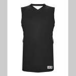 100% polyester tricot mesh * 100% polyester dazzle fabric yoke and sleeves * 1x1 rib-knit modified V-neck collar * Front and back yoke large enough for embellishment * Set-in sleeves with contrast-color insert * Outside locker label is on wearer's left side near bottom hem * Not meant to be worn with pads