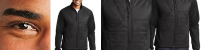 Quilted front and back panels join a water-resistant soft shell to make the Hybrid a trend-right performance jacket with an urban edge.