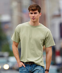 preshrunk 100% cotton jersey • 4.5-oz. • heathers 35% cotton/65% polyester • deluxe 30's Softstyle yarns • seamless double-needle 7/8" collar • taped neck and shoulders • rolled forward shoulders • double-needle sleeve and bottom hems • quarter-turned to eliminate center crease • Sizes: S-2XL, selected colors up to 3XL