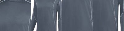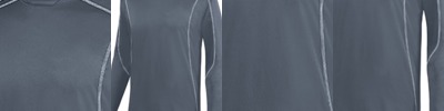 100% polyester performance wicking fleece ; Wicks moisture away from the body ; Crew neck with front detail ; Set-in sleeves ; Contrast color, three-needle stitching accent on shoulders, sleeves, and body ; Double-needle hemmed sleeves and curved bottom;
