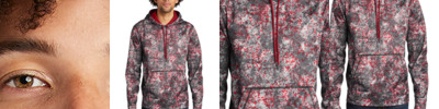 The granite-like Mineral Freeze print is strategically placed along with two solid team colors in this pullover that wicks moisture.