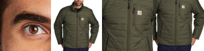 - Carhartt label sewn on chest pocket