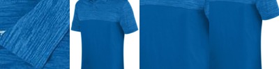 - 100% polyester heathered wicking knit top body, collar, and sleeves