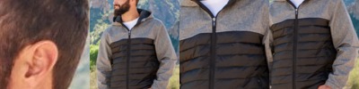 - Contrast color drawcord in scuba shaped hood on sizes M-2XL only
