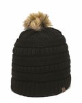 OC805 Outdoor Cap OC805 Cable Knit Faux Fur Pom
