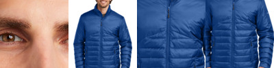 With horizontal baffles, a slight sheen and insulation that simulates down feathers, this is the newest puffy on the horizon. A water-resistant finish helps keep light rain out.