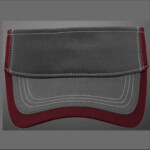 100% cotton twill fabric; Three panel construction with 2 ¼" tall front panels; Pre-curved PE visor; Charcoal colored fronts and white contrast colored stitching on all colors; ProSweatband with twill face.