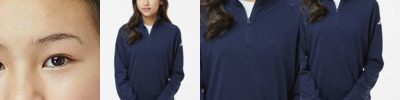 - Quarter-zip pullover style with zipper garage
