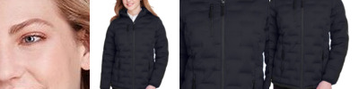 4 oz./yd²/135 gsm (US), 6.7 oz./L yd (CA), 100% polyester stretch jersey Polyester taffeta lining 20g polyester UTK SubDown™ fill Feminine fit with princess seams Three-layer 6,000 mm bonded waterproof membrane Water-resistant Wind smart technology UTK Hydropel Laminated stretch shell with welded puffer channeling Dyed-to-match stretch binding Center front coil zipper with contrast teeth, auto lock slider and rubber toggle Right-chest and lower front zippered pocket with contrast teeth and rubber toggle Audio port access through inside left pocket