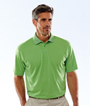 100% polyester mesh piqué • 4.4 oz. • moisture-wicking • UV protection • pill-resistant • fully taped flat rib-knit collar • half-moon patch • 3-button placket with dyed-to-match buttons • double-needle flat-lock stitching at shoulders • armholes • sleeves and bottom hem • 2" side vents • tagless • Sizes: S-XL
