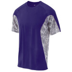 100% poly sublimated moisture management/anti microbial fabric • 3.5 oz • Sublimated Shock digital side and sleeve panel inserts • Self fabric collar • Double needle hem • Badger heat seal logo on left sleeve • Sizes: XS-XL