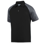 100% polyester wicking knit * 100% sublimated polyester wicking knit sleeve * Wicks moisture away from the body * Heat sealed label * Self-fabric collar * Contrast color sublimated Breaker print on raglan sleeves * Box-stitched placket * Three matching buttons with cross-stitching * Double-needle hemmed sleeves and bottom
